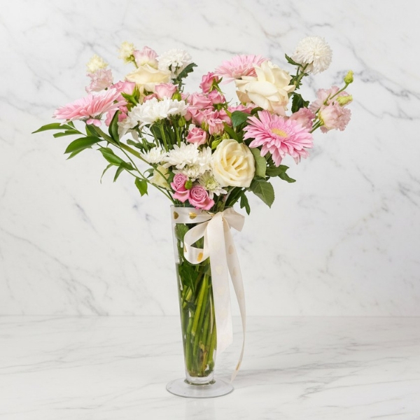 Soft pink +white fresh flowers in a bag❤️